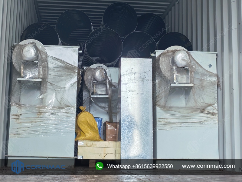 27 сентября 2025 г. Импульсный рукавный пылеуловитель DMC-200 и вытяжной вентилятор компании CORINMAC были успешно загружены и отправлены в Армению.