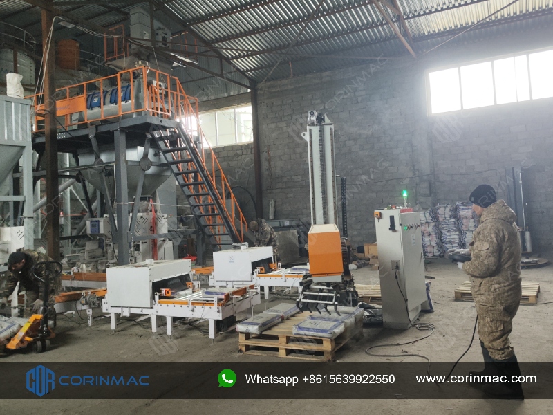 Недавно в Казахстане успешно завершился монтаж и ввод в эксплуатацию линии по производству сухих строительных смесей компании CORINMAC, включающей упаковочные машины для клапанных мешков, колонный паллетизатор и полный комплект вспомогательного оборудования, и проект официально перешел в стадию производства.