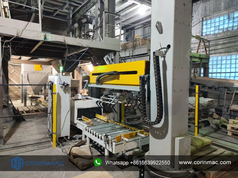 Интеллектуальная система захвата: автоматически захватывает готовые мешки в соответствии с заданной программой и точно укладывает их на поддоны, обеспечивая аккуратные и надежные штабели.