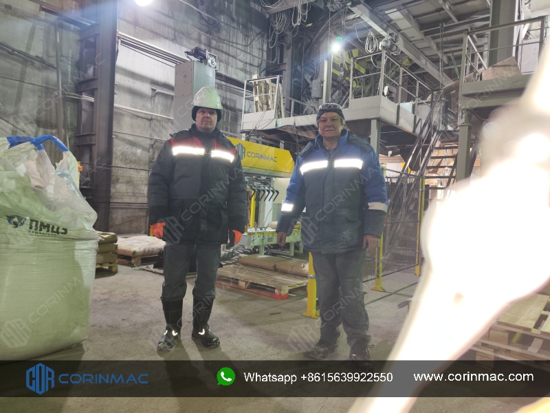 Линия упаковки и паллетирования сухих строительных растворов CORINMAC установлена в России.